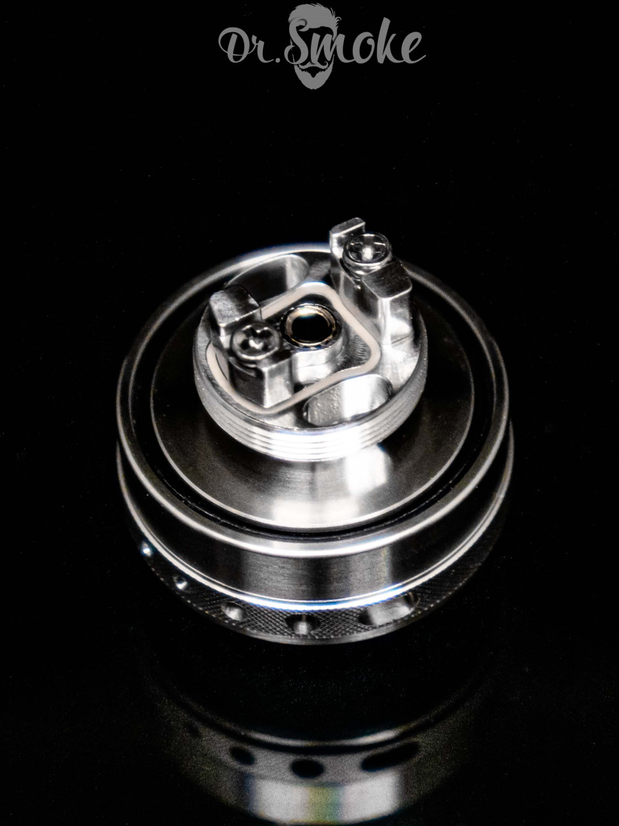 Бак изготовлен из высококачественной нержавеющей стали. Корпус не имеет лишних украшений и отличается изысканной и простой эстетикой. Вверху расположился тонкий 510 дрип-тип для действительно тугой МТЛ-затяжки, который в случае необходимости можно легко сменить на любой другой 510 дрип-тип. Диаметр бака - 22 мм.