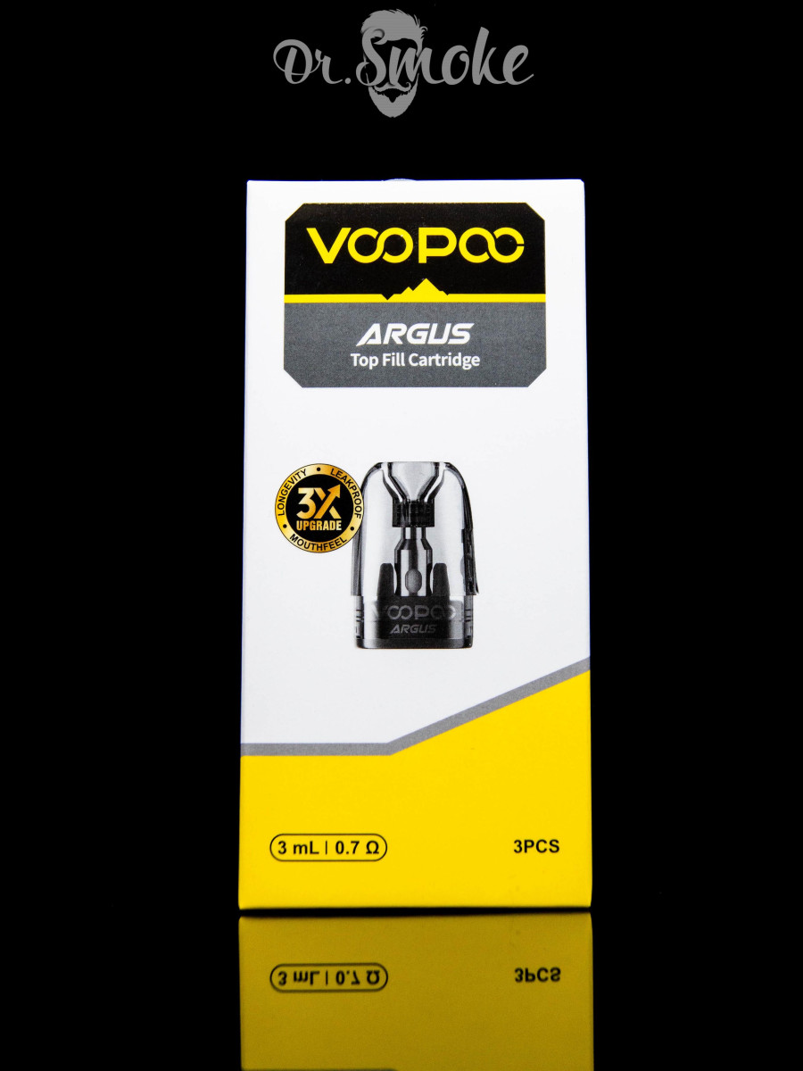 Voopoo Argus Pod Top Fill Cartridge - змінний картридж, що перезаправляється, із вбудованим випаровувачем, це зручне рішення для підсистем, в якому резервуар для рідини та нагрівальний елемент об'єднані в одному корпусі. При появі горілого присмаку або будь-яких інших змін у смакопередачі, замінюється весь картридж повністю, що позбавляє необхідності змінювати випаровувач окремо.