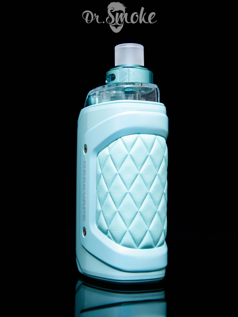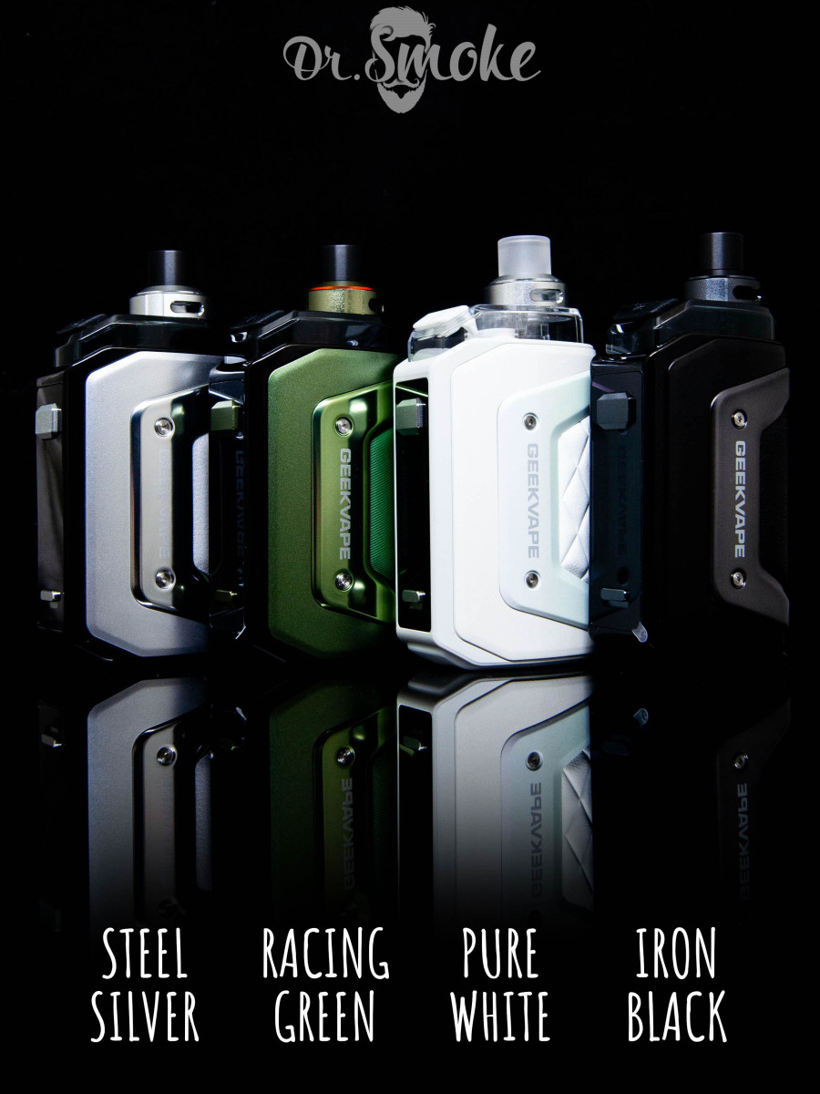 Металевий обідок у формі літери C, фірмовий знак пристроїв Aegis від Geekvape, чудово виглядає на Hero 5, як і невелика шкіряна рукоятка, яку він обрамляє. Доступні кольори Steel Silver і Iron Black, які виглядають доволі стримано.