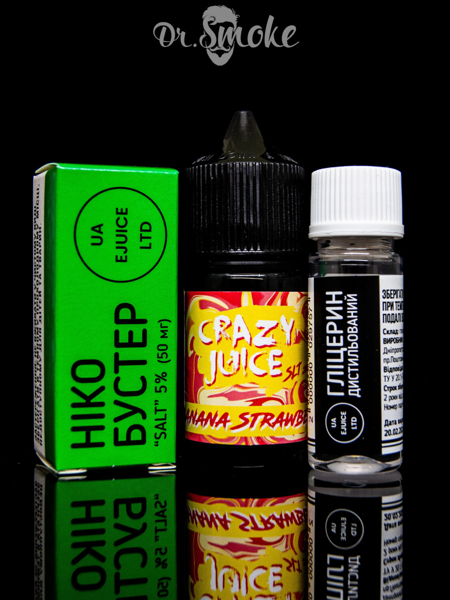 Опис: Набір для змішування Crazy Juice Salt Banana Strawberry (30ml)