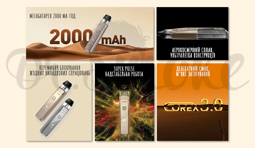 Нові картриджі COREX 3.0 просто фантастичні: вони забезпечують насичений смак, глибокий аромат і стабільну кількість пари. Вони служать досить довго (не менше тижня кожен) і, якщо не допускати елементарних помилок, практично повністю захищені від протікань.